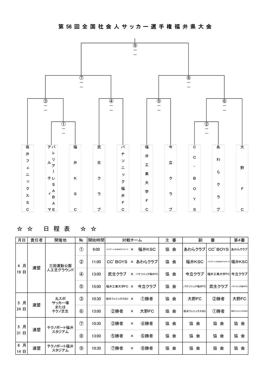 第56回全国社会人サッカー選手権福井県大会 日程・試合会場変更のお知らせ