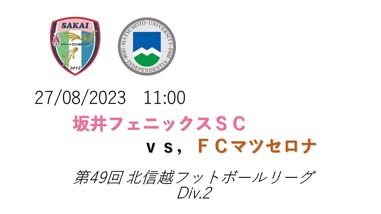 9月3日 日曜日に行われる、第49回北信越フットボールリーグDiv.2