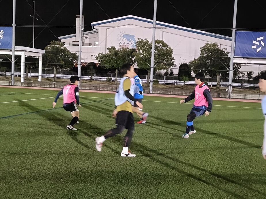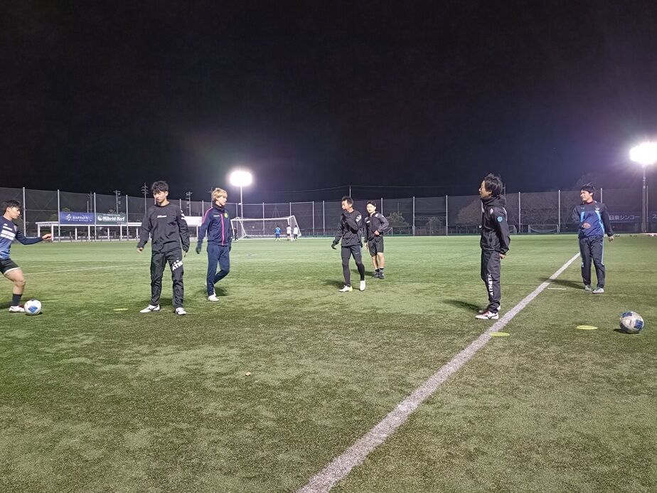 最後の練習は、ホームスタジアムの日東シンコースタジアム丸岡人工芝グラウンドで、県リーグチームとの交流も合わせ、ゲーム中心のトレーニングを行いました。