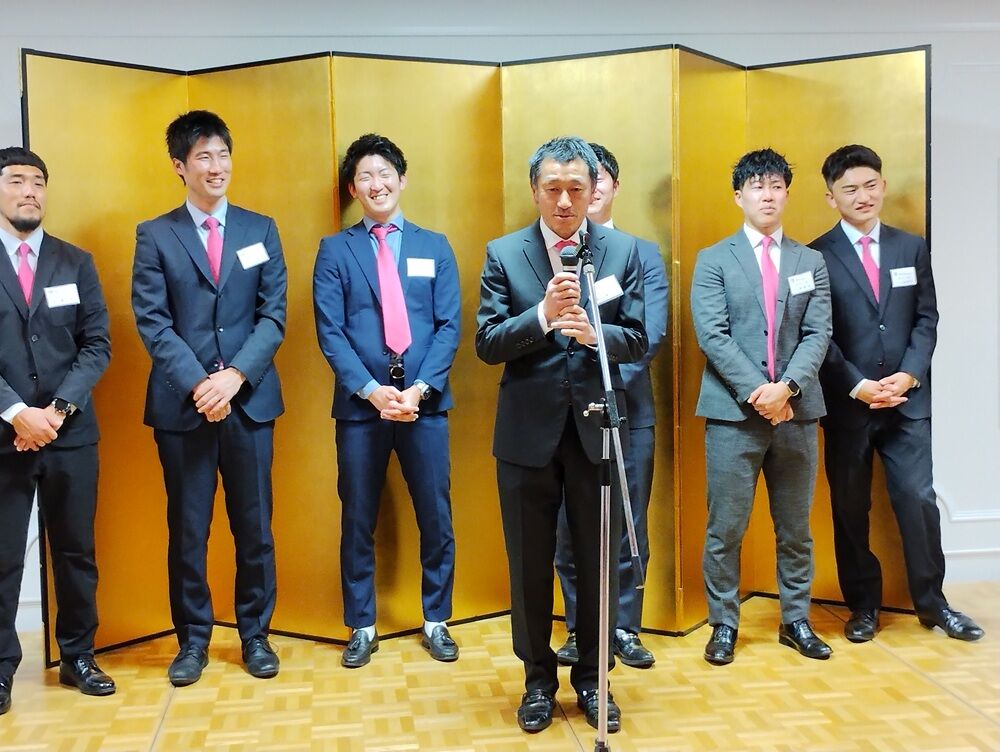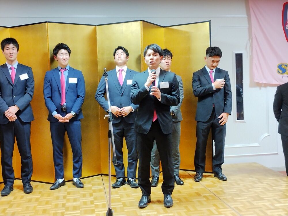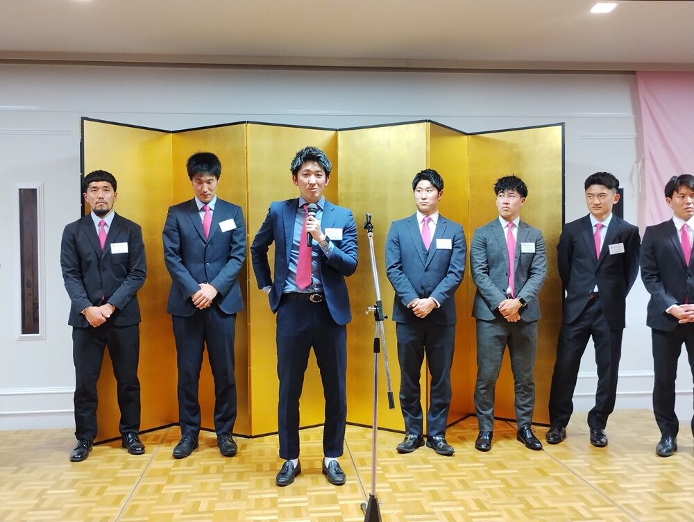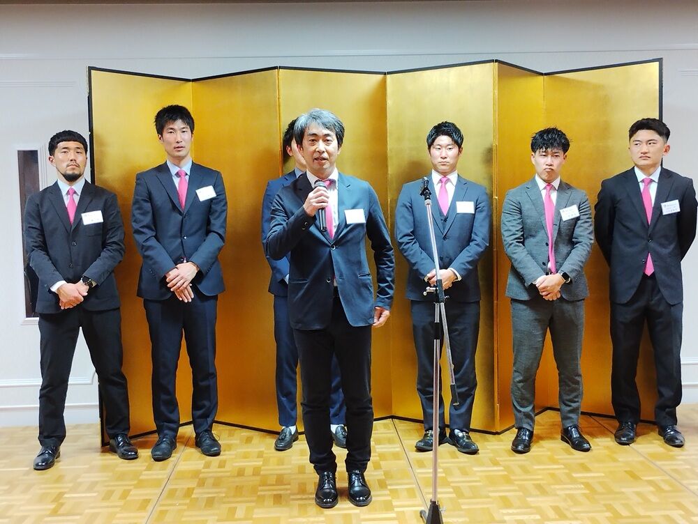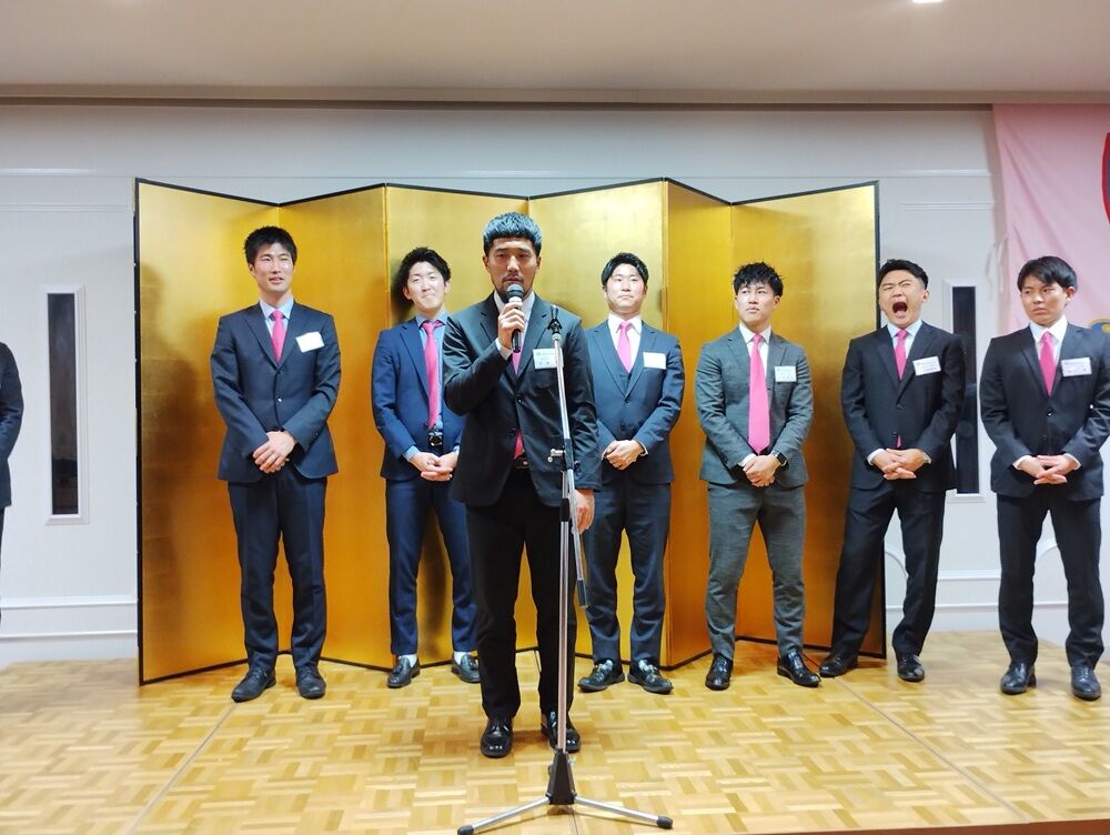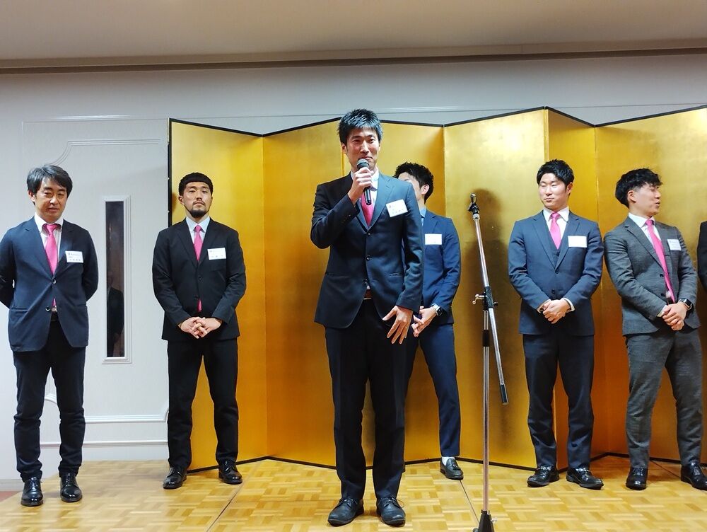チームからは、東代表、花岡総監督が2025シーズンの決意を述べ、参加した選手からも自己紹介の後一言ずつ、日ごろのお礼と今シーズンの目標などを述べさせていただきました。