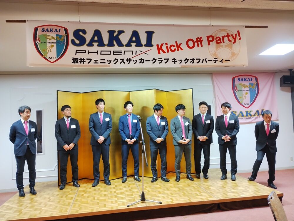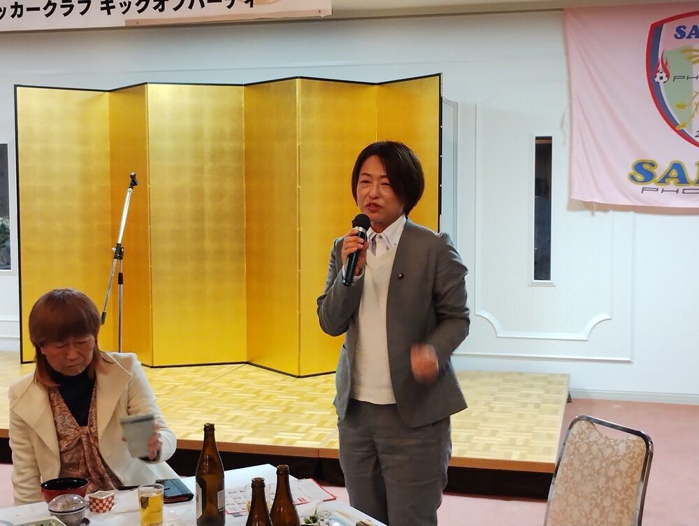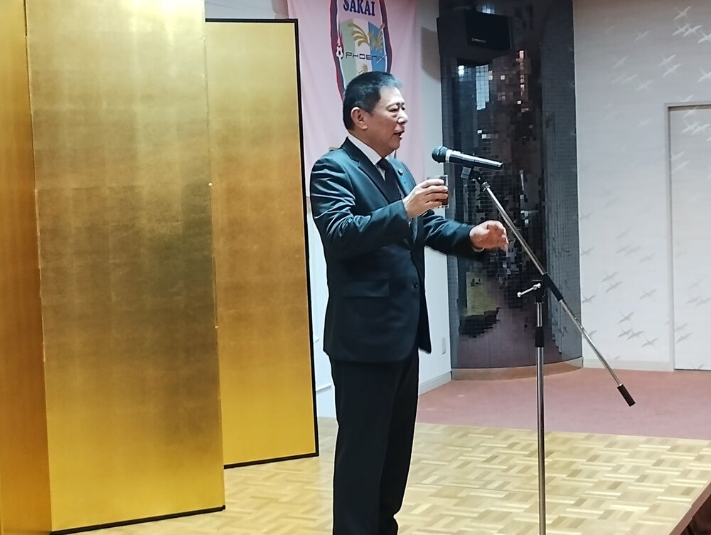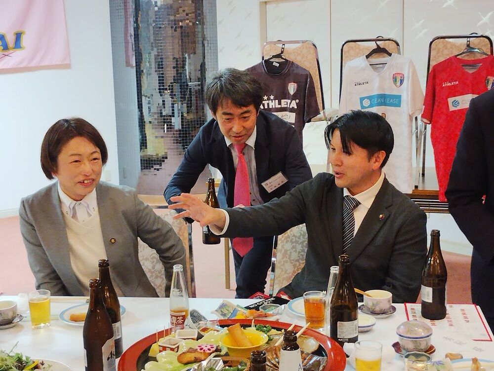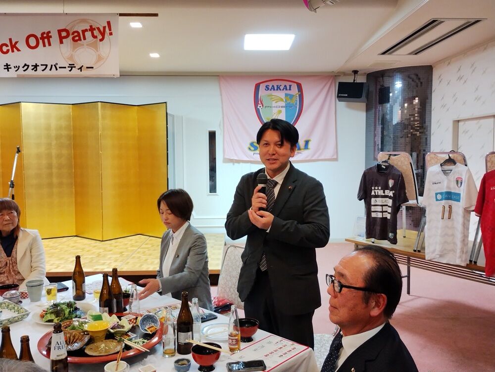 会場には、坂井市副市長 斎野秀幸 様、坂井市サッカー協会長 佐藤岳之 様をはじめ、地域選出の県会議員の皆さま、坂井市議会議員の皆さま、坂井フェニックス後援会の皆さま、チームスポンサーの皆さまにご来場いただき、和やかな雰囲気の中“熱い”応援の言葉をいただきました。